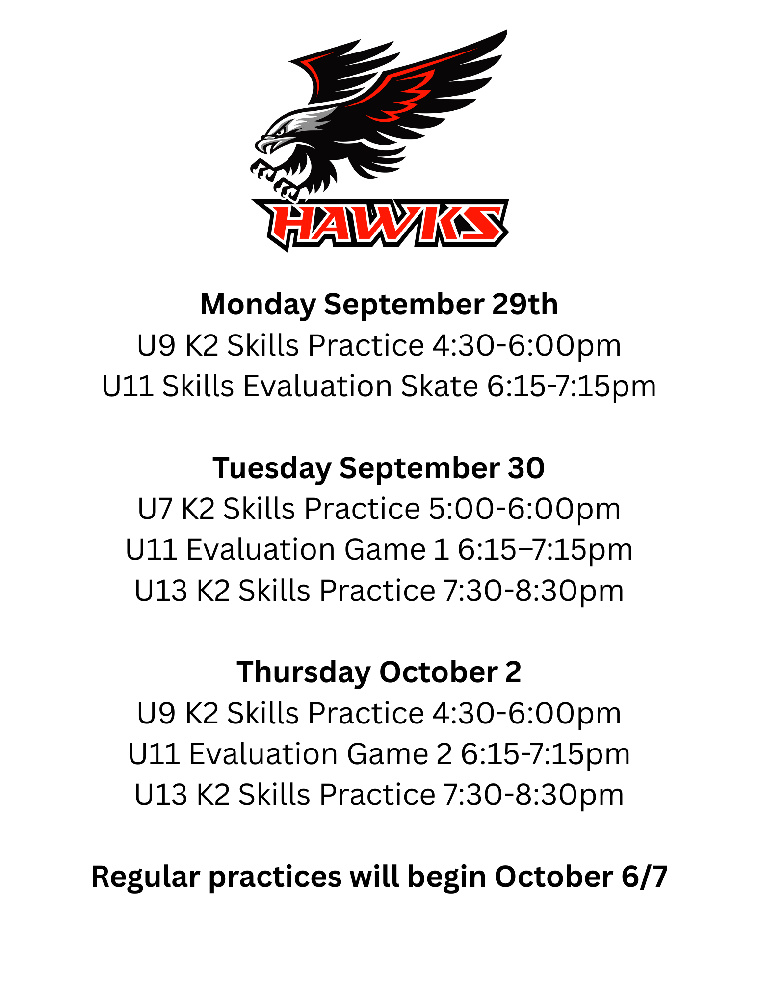 U11 teams and as such, in accordance with the Hockey Canada/Hockey Alberta U11 Player Pathway, we need to provide four skates prior to evaluations commencing. We have secured K2 Hockey Clinics (Kevin Knibbs) to provide season preparation and checking awareness camps for our U11 players.